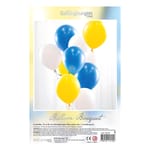 Kitet innehåller latexballonger i blått, gult och vitt samt matchande ballongvikt och snöre. Fyll ballongerna med helium och fäst i vikten för en komplett studentdekoration. Allt studentpynt du behöver för en färdig bukett ingår.