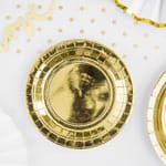 Pappersassietter i metallisk guldfinish. Engångs och smidiga att slänga efter användning. Passar fint till studentdukning, nyårsfirande eller andra tillställningar där du vill ha en gyllene touch på bordet.
