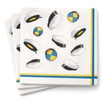 Student papperstallrikar med studentmössor för en enkel studentdukning. Engångstallrik i papper med motiv av studentmössor och dekorativ kant i blått och gult.