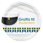 Servetter i papper med studentmotiv, svenskt mönster och texten Grattis Till Studenten. Trelagerskvalitet för bättre absorption. Förpackningen innehåller ett flak om tjugo stycken, idealiska student servetter till din studentdukning.